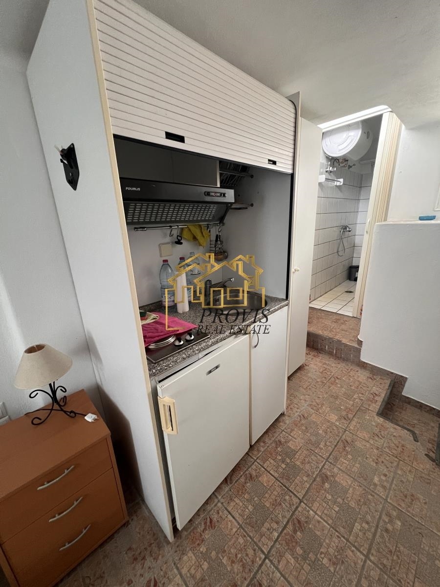 Mykonos, Ano Mera, Small Studio For Rent, 20 sq.m., Property Status: Very Good, Floor: Ground floor, 1 Level(s), 1 Kitchen(s), 1 Bathroom(s), Energy Certificate: E, 1 parking(s), Floor type: Tiles, Features: Furnished, Bright, Price: 3.500€. PROVIS REAL ESTATE LTD, Tel: 2114016161, email: [email protected]