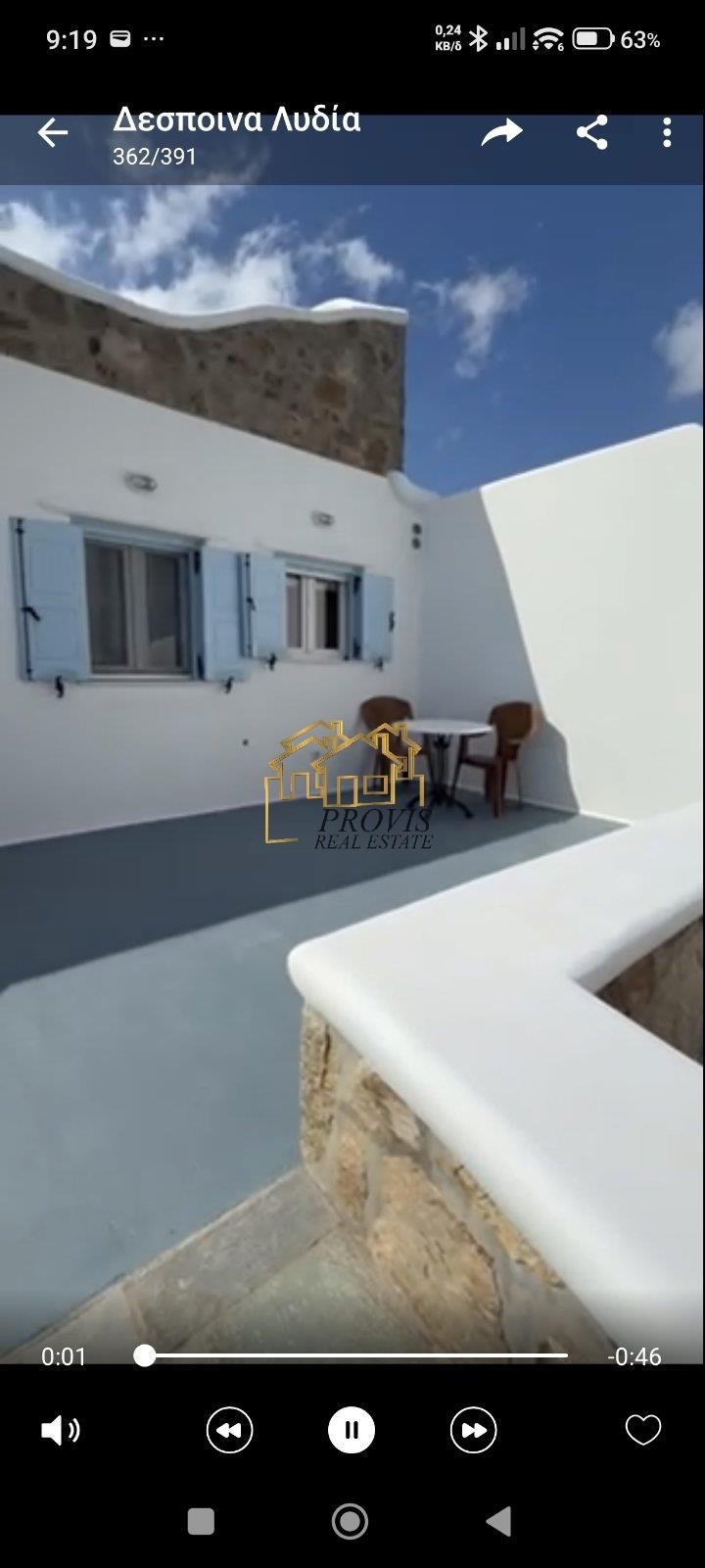 Mykonos, Ano Mera, Apartment For Rent, 30 sq.m., Property Status: Refurbished, Floor: Ground floor, 1 Bedrooms 1 Kitchen(s), 1 Bathroom(s), Heating: Personal, View: Mountain View + Sea view, Building Year: 2010, Energy Certificate: E, Floor type: Tiles, Type of door frames: Aluminum, Features: Double Glazed Windows, Balconies, Airy, Roadside, Bright, AirConditioning, Painted, Renovated, Price: 6.500€. PROVIS REAL ESTATE ΕΕ, Tel: 2114016161, email: [email protected]